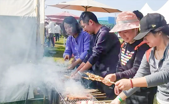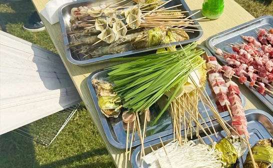 當炭火點燃,美食的香氣瞬間彌漫開來。旺盛的爐火炙烤著一串串新鮮的食物:羊肉串、雞翅、五花肉、香腸、金針菇等各式美食,誘人的香氣隨風飄散,令人垂涎欲滴。大家一邊品嘗著美食,一邊分享著生活中的趣事,歡聲笑語回蕩在整個場地。