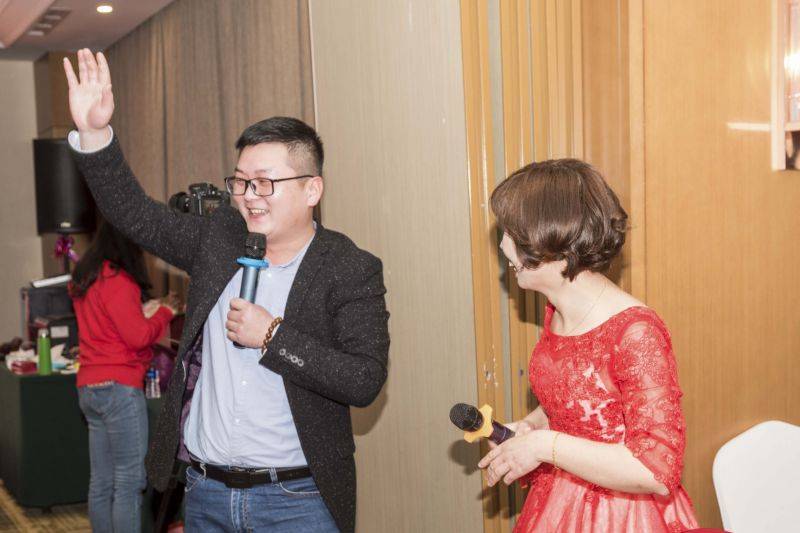 不僅有臺(tái)上的兩位主持人,這次晚會(huì)還特別設(shè)置場(chǎng)外主持,他們是劉小胖和Miss 鄭,他們負(fù)責(zé)讓整個(gè)年會(huì)的氣氛活躍起來(lái)!(也是專門“慫恿”徐老板發(fā)紅包)