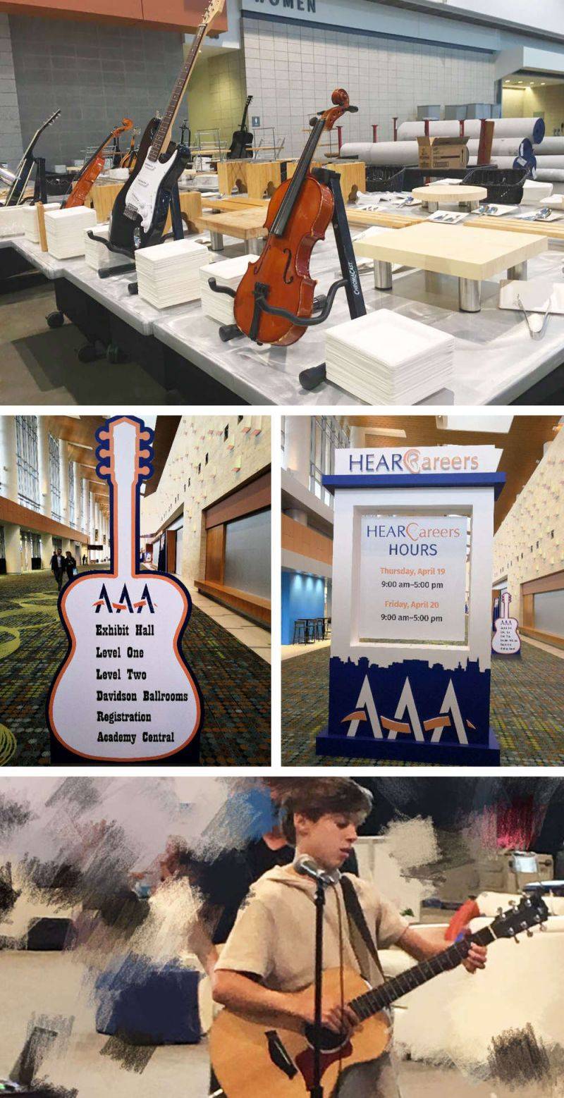 展會現(xiàn)場,除了商業(yè)化的各種訂單,還彌漫著一縷本土文化氣息。其實(shí)美國納什維爾是美國鄉(xiāng)村音樂的發(fā)源地,音樂元素散發(fā)在每一個(gè)角落,AAA展會也不例外哦!