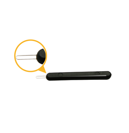 頂部的鋼針圓環(huán)可用于清除助聽(tīng)器或耳模中的異物。